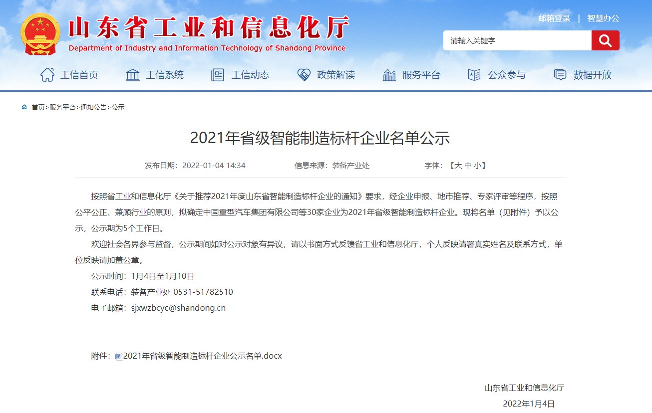 克日,,,,,山东省工业和信息化厅宣布了《2021年省级智能制造标杆企业名单公示》,,,,,NG相信品牌的力量官网乐成入选。。。。。。。。此次2021年省级智能制造标杆企业评选,,,,,旨在加速构建“智能制造装备-系统解决计划-数字化车间-智能工厂-智能制造标杆企业”多维笼罩的培育系统,,,,,推动全省智能制造生长。。。。。。。。
